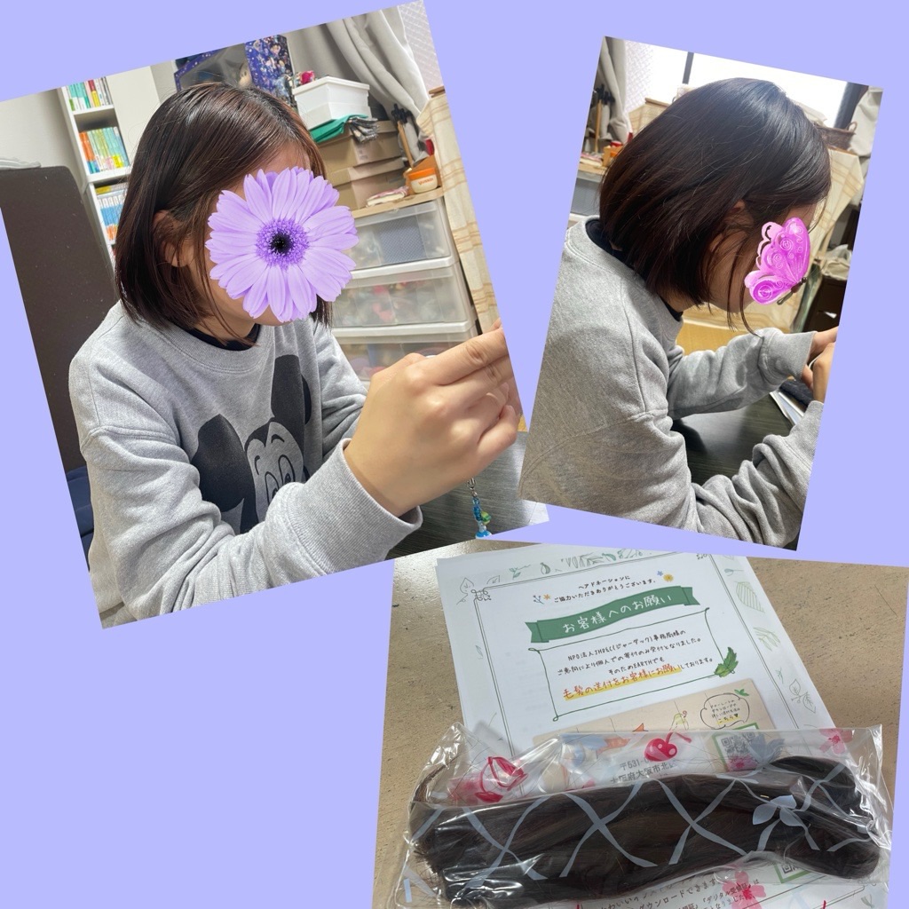 あ、昨日娘は髪の毛をバッサリ切りました。中学生以来かな。ヘアドネーションするので、31cm以上は切ってるよ。