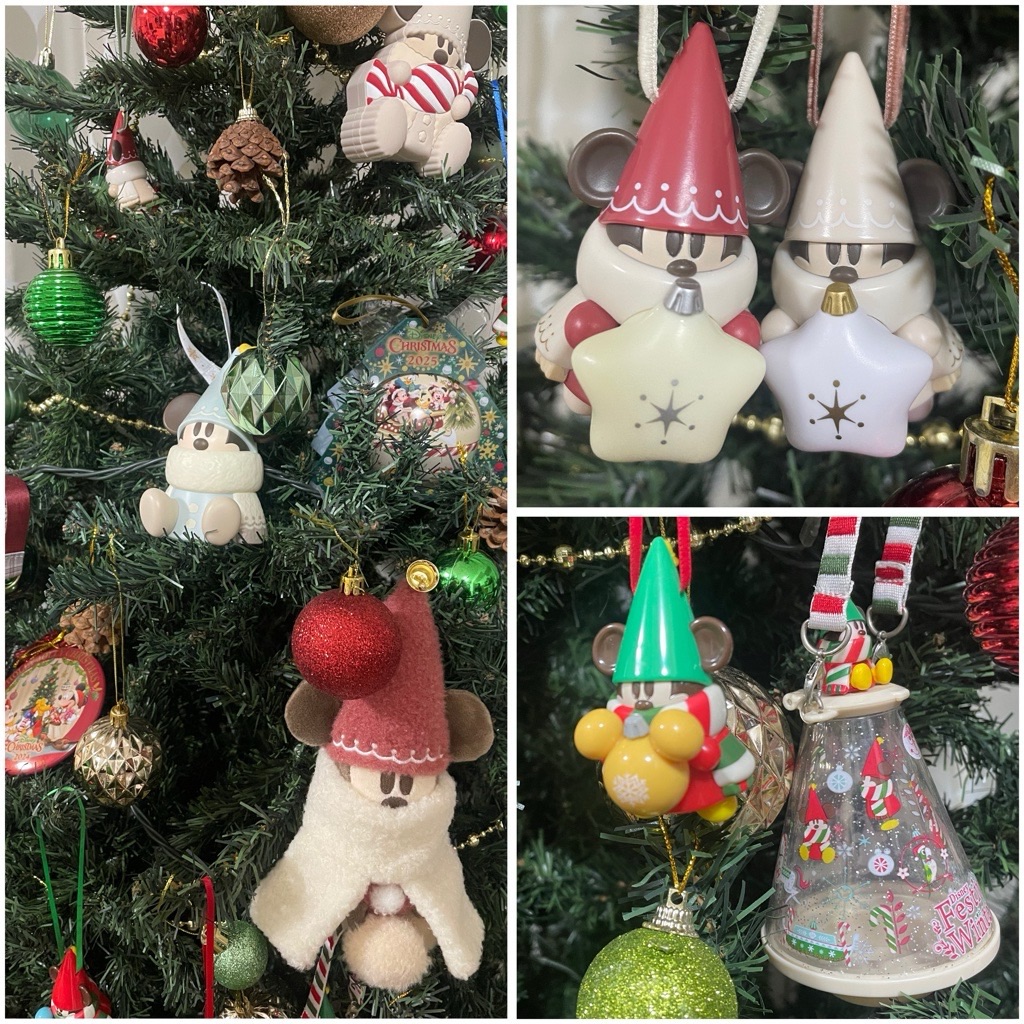 昨夜と同じく赤×緑×ゴールドのオーナメントとリルリンリンいっぱい。盛り盛りの飾り付けです😄