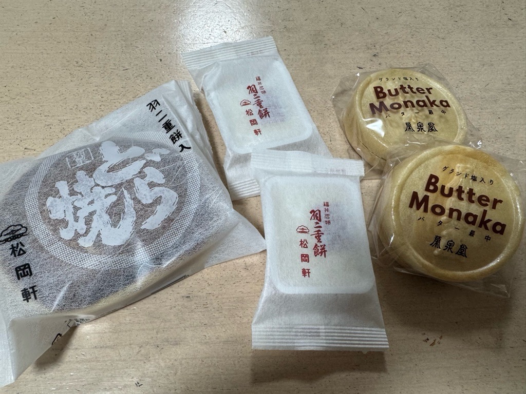 リピリピ買いのバター最中、福井アンテナショップで売り切れてた羽二重餅も見つけたよー
