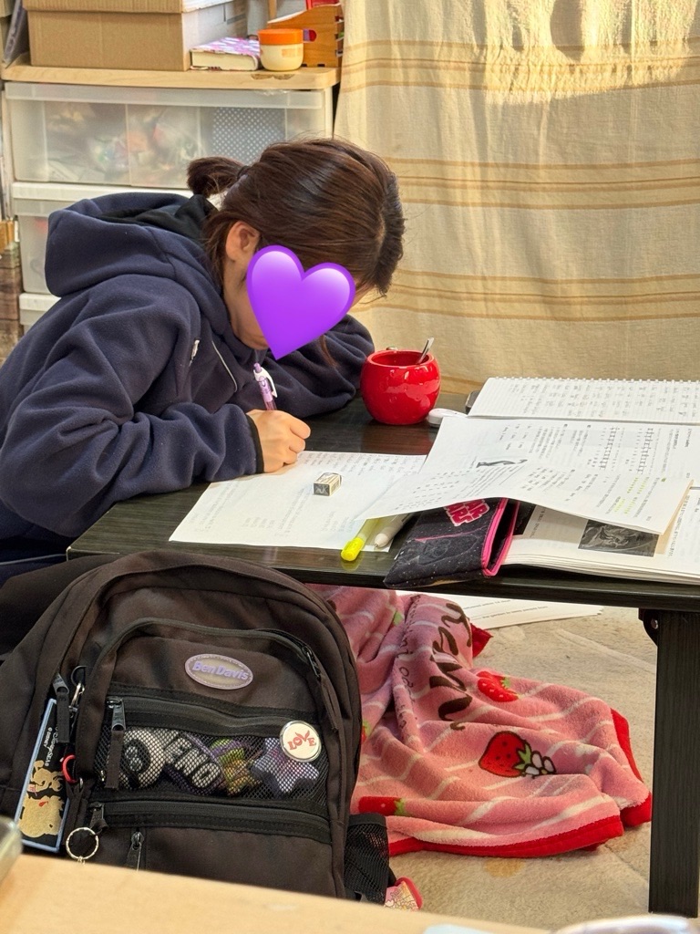 課題あったり、冬休み明けに試験あるから、毎日勉強してる。よく頑張ってるわ。