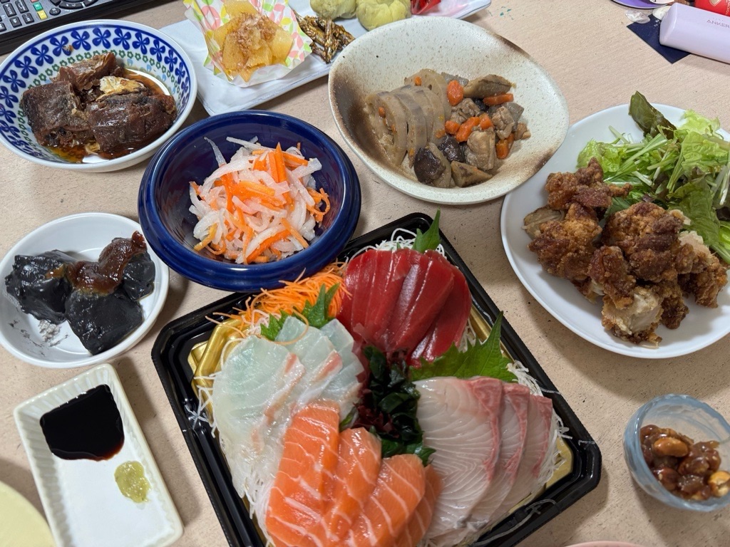 休みが終わったねぇ…2026年1月4日 明日から主人は仕事始め。9連休あっというま! 娘も学校始まります。休みの間もほぼ毎日勉強してたわ。 私は今日明日とお休み〜。 今日のランチはバーガーキング🍔 先月近所にOpenしたのです。 私は初バーキン。 ボリュームあるわ〜。肉肉しくて美味しかった。 お腹いっぱいになったよ😋 夜ごはんは 娘大好きタコライス。野菜スープもね。 昨日のごはんも↓ イオンで買ったお刺身と唐揚げ。 おせちの残りも。 日記Posted by junko