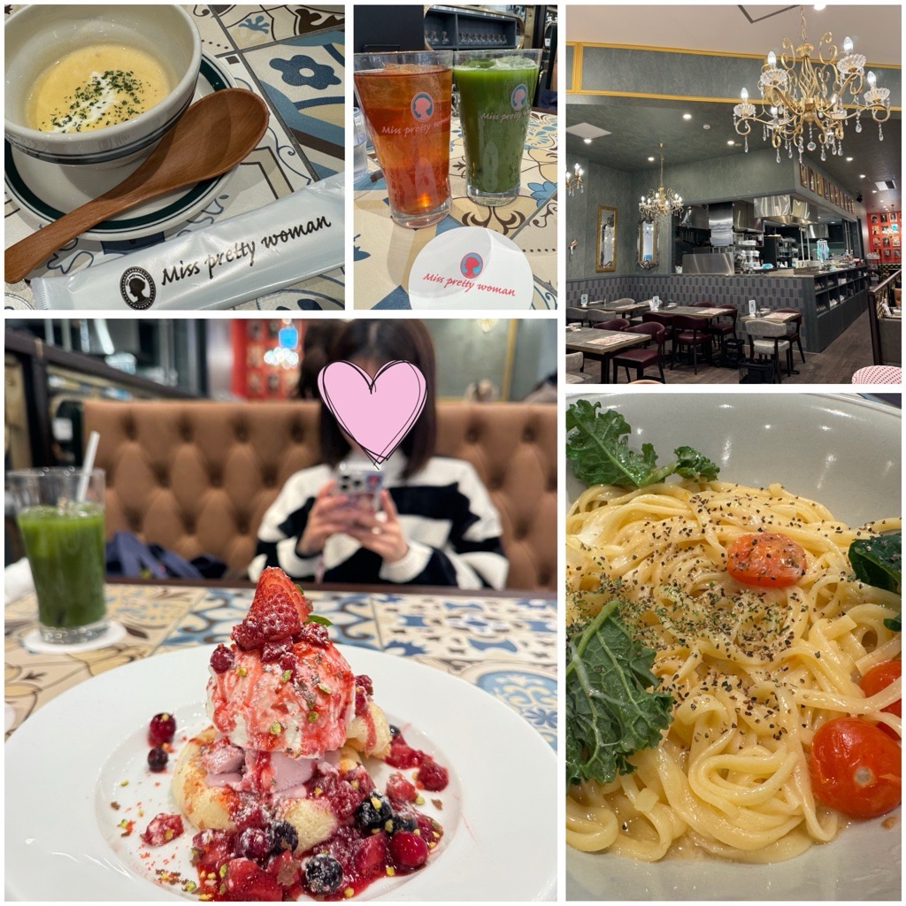 平日ランチのドリンク&スープ付きで、パスタとパンケーキを頼んでシェア。美味しかった😋