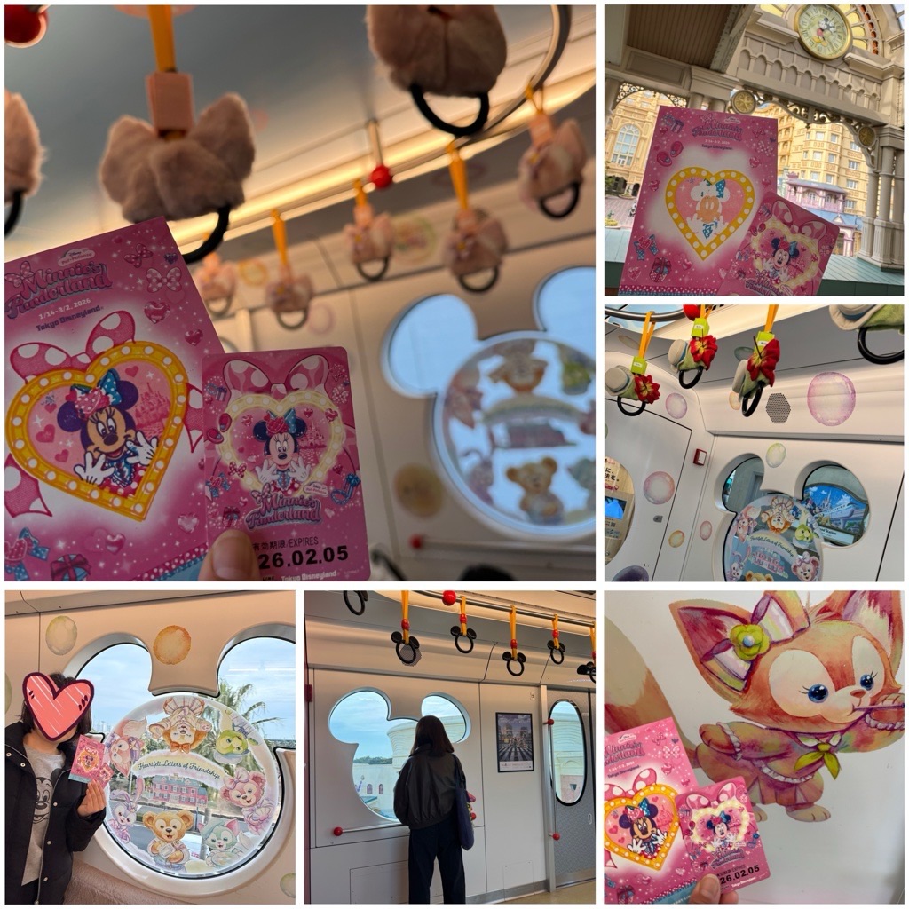4つの駅で下車して、ミニーちゃんスタンプ完成します。モフモフダッフィーリゾラにも乗れたよー。かわいいっ💕