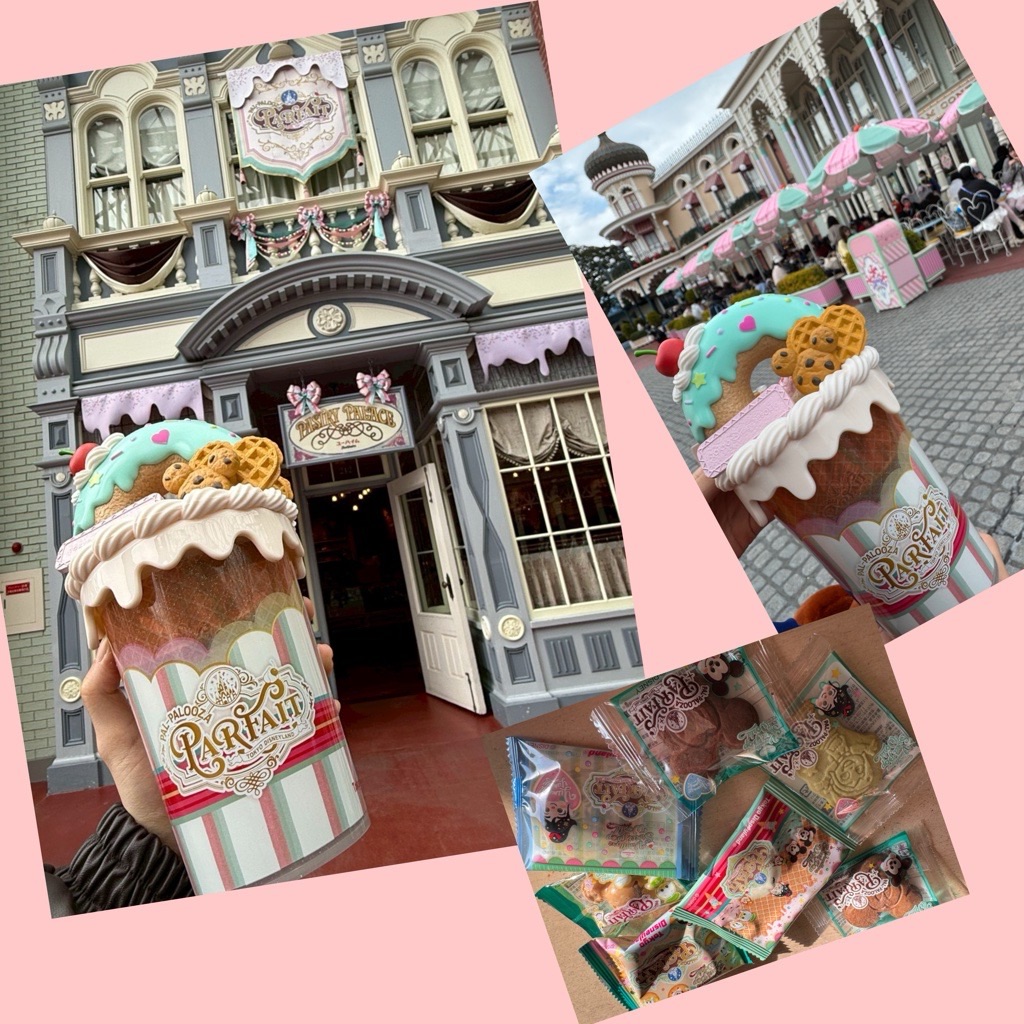 娘は、ヴァネパルフードのパルパルーザ・パルフェを買いに行きました。ベース、ソース、トッピングをそれぞれ選んで組み合わせ、オリジナルパルフェが作れます。美味しかったよー(ハートのクッキーはペイストリーパレスで選んだお菓子。別売りで勝手にトッピング😅)