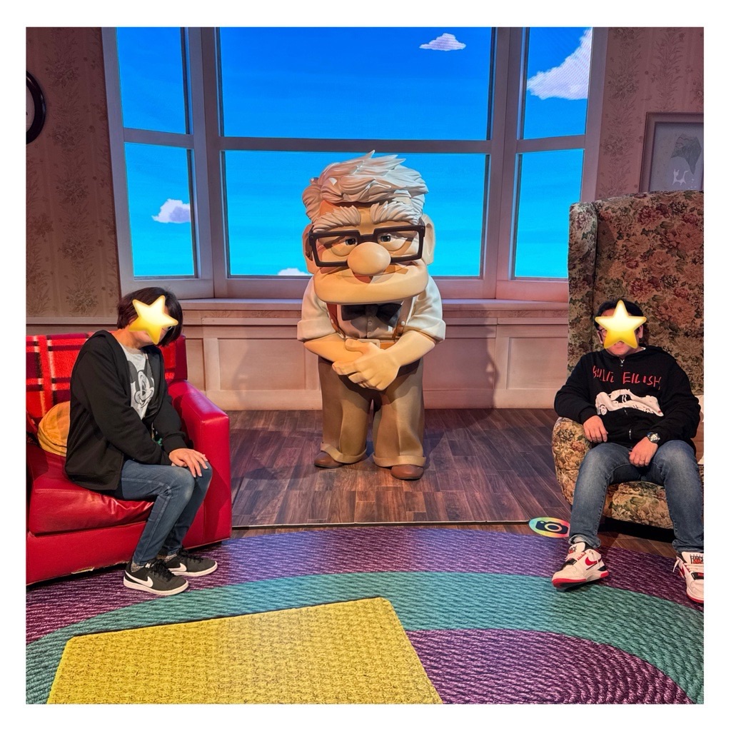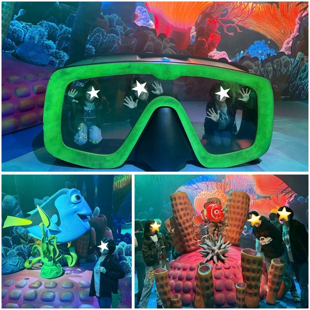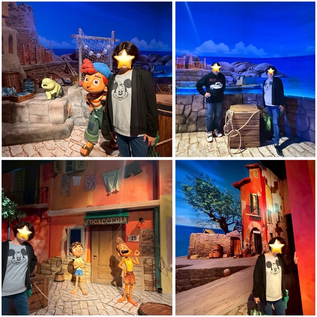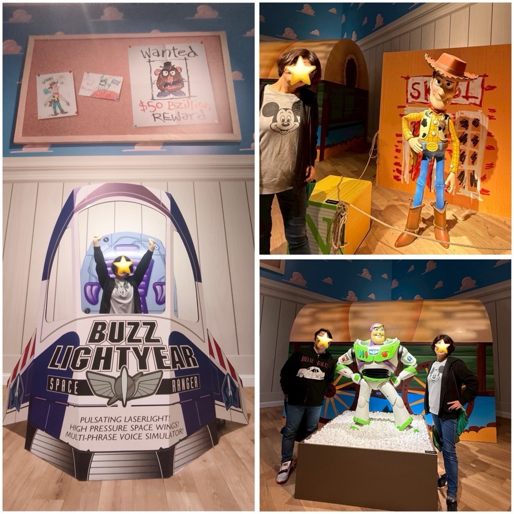 ピクサー映画の世界が再現された部屋を順番に見て回り、写真撮影。
