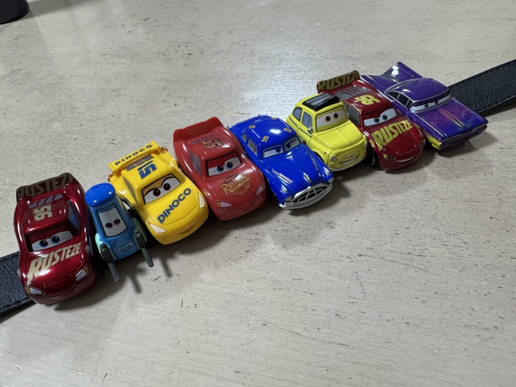 で、ベルトにカーズのトミカいっぱい付けて行ったよ😅