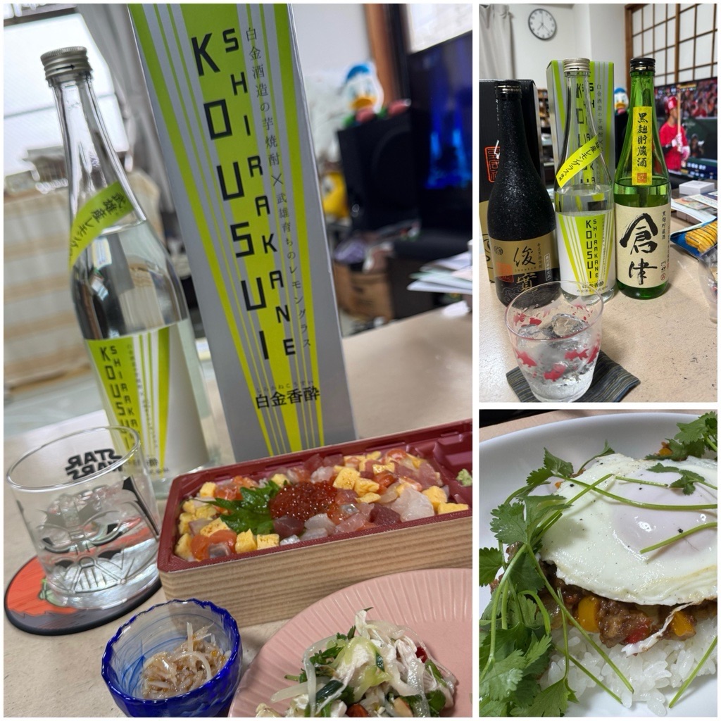 白金酒造の「白金香酔」芋焼酎なんだけど、レモングラスが入ってて爽やか飲みやすい。